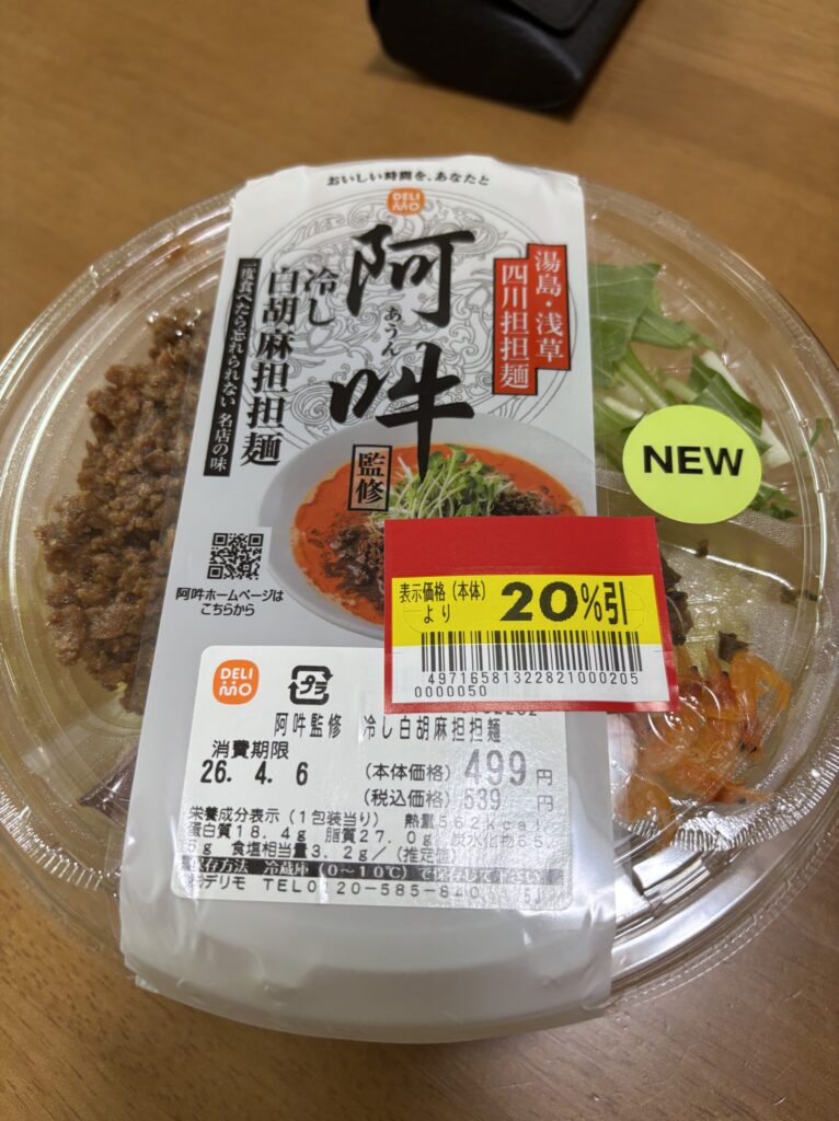 結局どうしたのかというと、スーパーに寄って売り場を彷徨った挙句、20%OFFの冷やし担々麺を買って自宅に持ち帰って食べました。