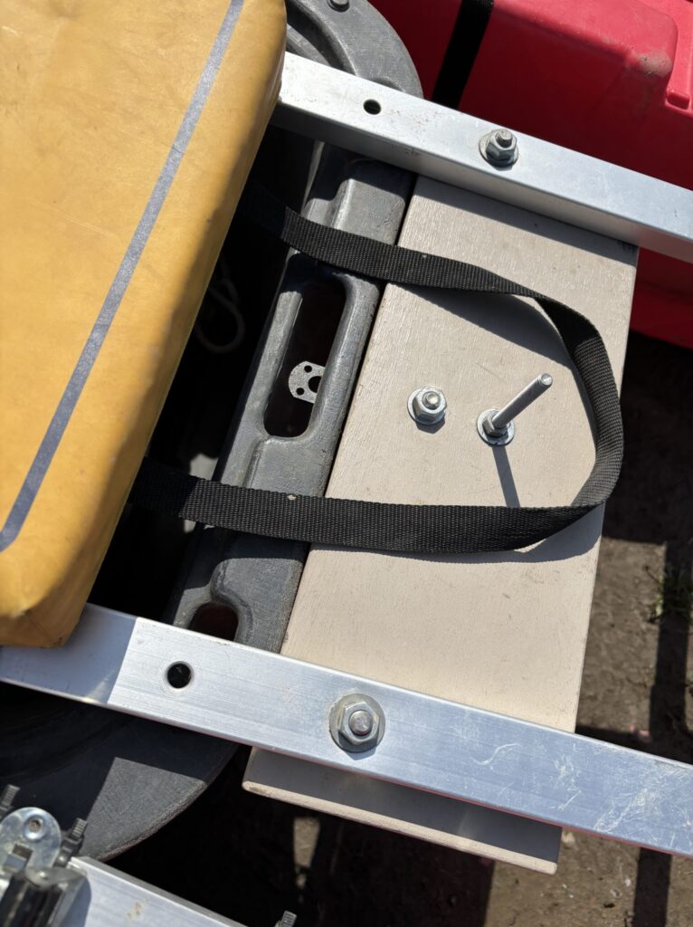 左右のアルミ角材の間をコンパネでつないであり、そのKAIキットは金具でフロボ本体に引っかけているのですが。