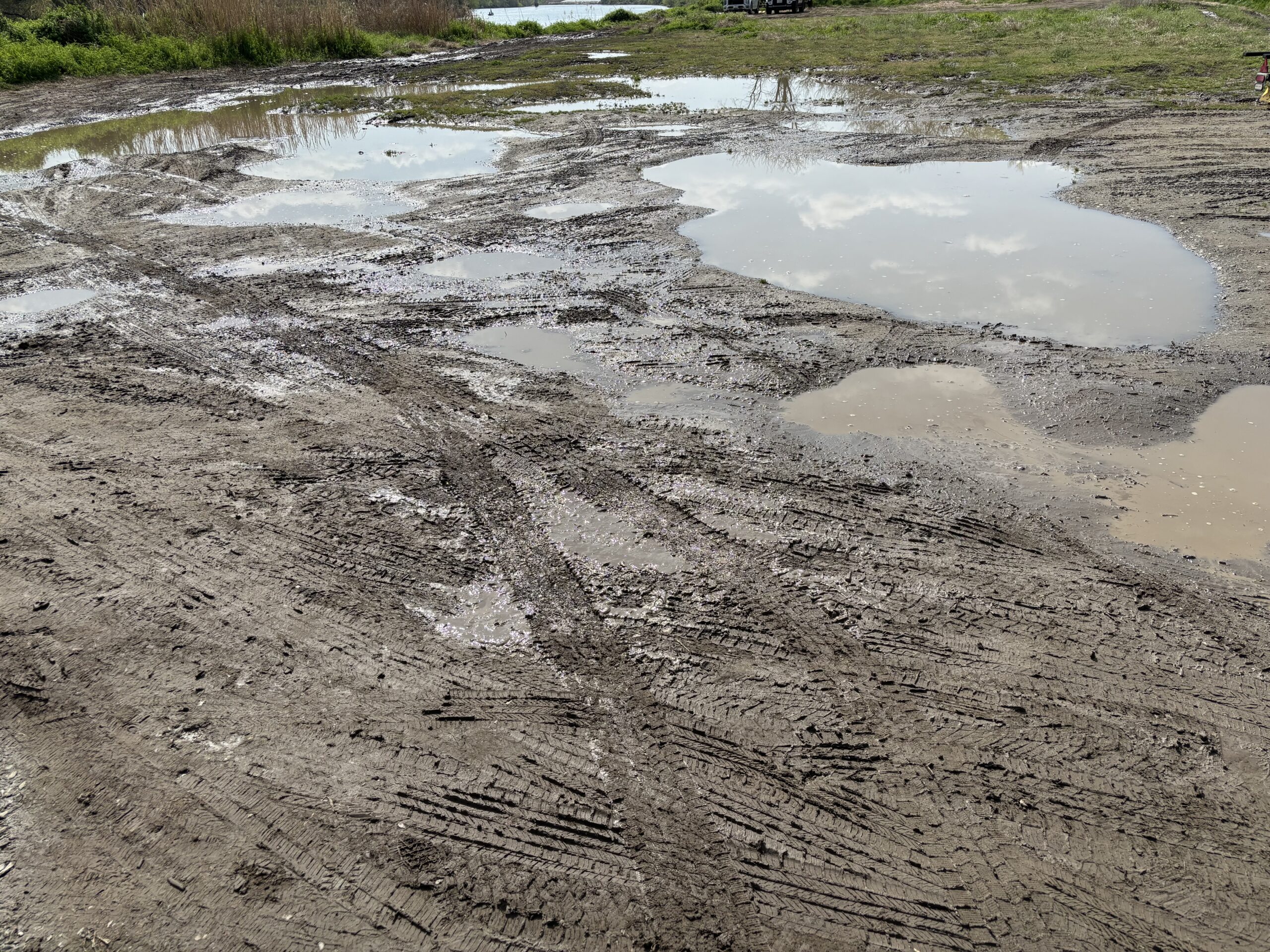 後輪は電動とはいえ一応四駆なので、ぬかるみ内で止まってしまわない限りはハマってしまうリスクは少ないと考えていますが、怖いのは水没というか、泥没というか。