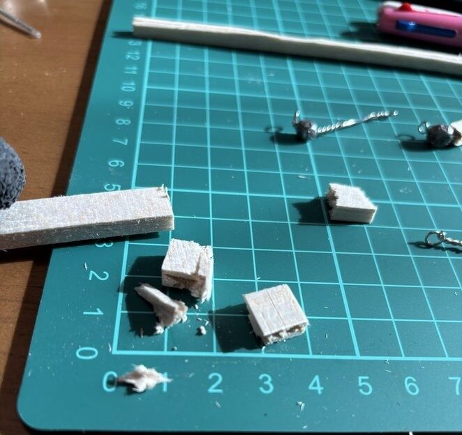 最初はバルサを削って作ろうかと思いましたが、ボロボロ削れて難しいのでやめました。