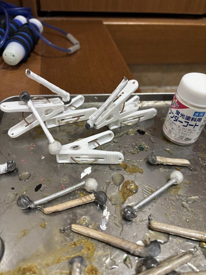 大物が掛かってももげないように、レジンを塗って硬化を2回以上は繰り返した方が良いと思います。