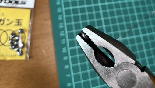 - ウエイトを通さない状態でスクリューを作り、ペンチでつぶしたガン玉をかませます。