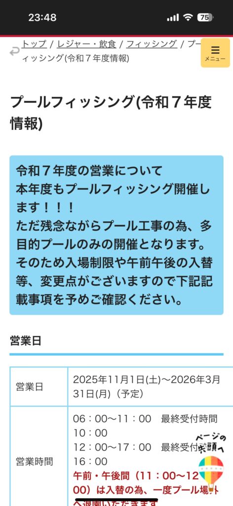 ビ「11月1日、川越水上公園のオープンの日に釣りに行きたいんだ。