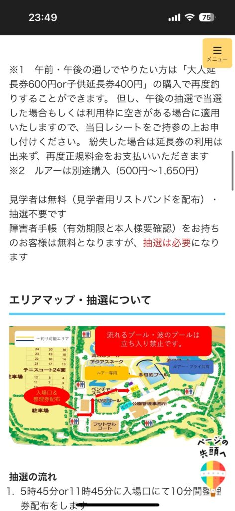 午後の部の抽選で定員に達しなければ延長料金を払って再入場が可能というシステムになります。