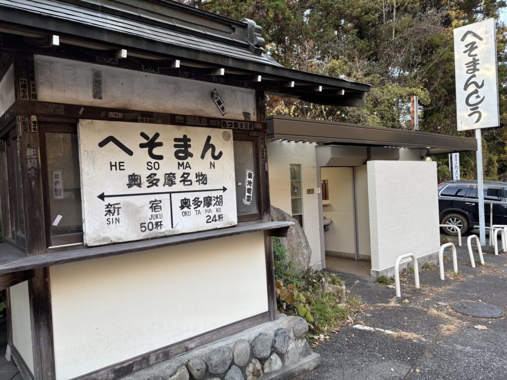 青梅街道を帰ってくるときにいつも通りかかる「へそまんじゅう本舗」、通称「へそまん」。