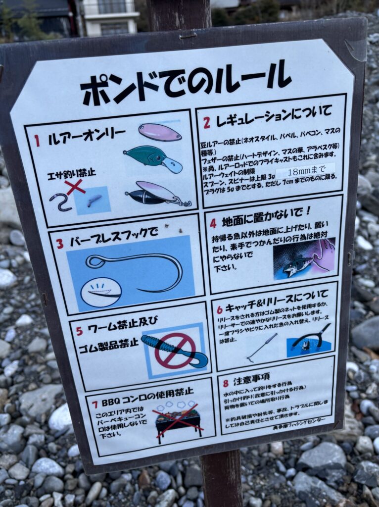 大きな違いは、ポンドではバベル・ネオスタイル・バベコンなどの縦釣り・豆系ルアーやフェザーが禁止となっています。