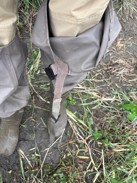 ビーノは足場の悪い場所でフロボを出すために、太ももまであるヒップウエーダーというものを履いているのですが、このヒップウエーダーは落っこちないようにするためにはベルトかどこかにストラップを引っかけて止める必要があるのです。ガーターベルトから機能性だけ残してセクシー要素を100%抜いたようなものといえば伝わるでしょうか?