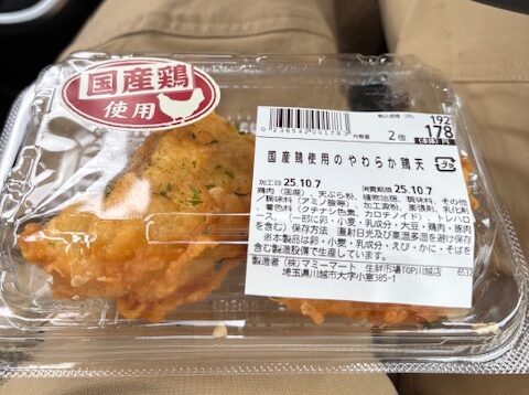 TOPで鶏天を買って車内でムシャムシャ食べちゃいました。