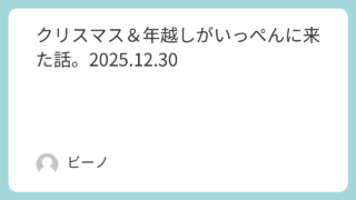 父ちゃんのつぶやき クリスマス&年越しがいっぺんに来た話。2025.12.30 釣り好き兼業主夫のビーノ家では、今年、クリスマスと年越しがいっぺんに来ました。何のこっちゃな話ですが、家族の思い出の記録に、日記として書いておきます。トホホな話ですが、お暇な方は見て下さいね~。数日前。一家で「ももクリ」に参戦してきた。話は... 2026.01.01 父ちゃんのつぶやき